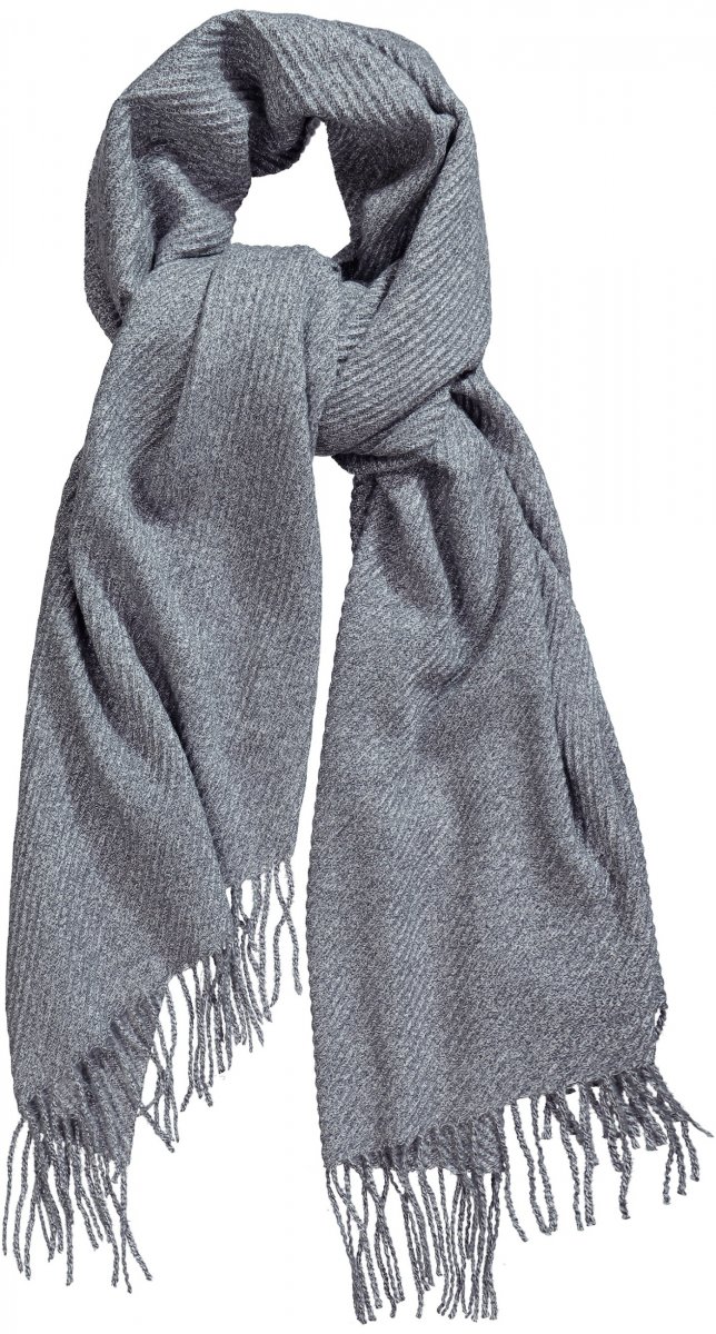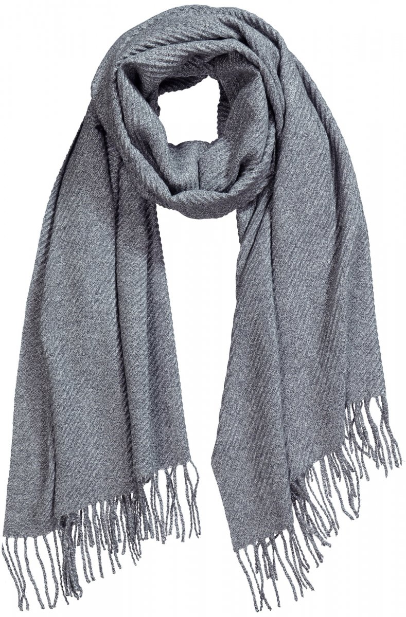 Ulla Popken Ribbed Knit Fringed Hem Scarf Grey Melange