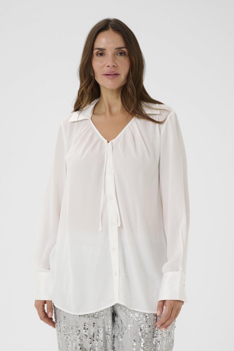 Риза с дълъг ръкавПредлага се в размери 42–54От марката Kaffe CurveМатериал: 100 % полиестерСтандартна кройкаЦветът е бялКликнете тук, за да видите ръководството за размери