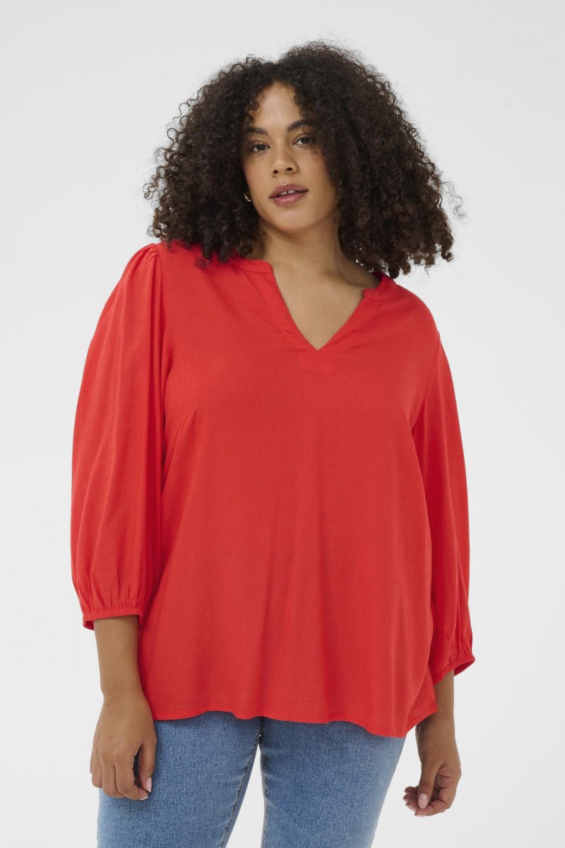 БлузаПредлага се в размери 42–54От марката Kaffe CurveМатериал: 70 % вискоза (LivaEco™), 30 % ленСтандартна кройкаЦветът е червенКликнете тук, за да видите ръководството за размери