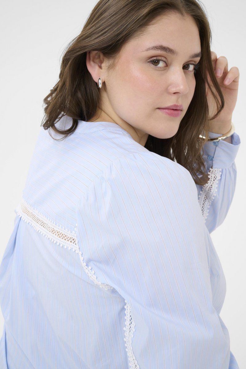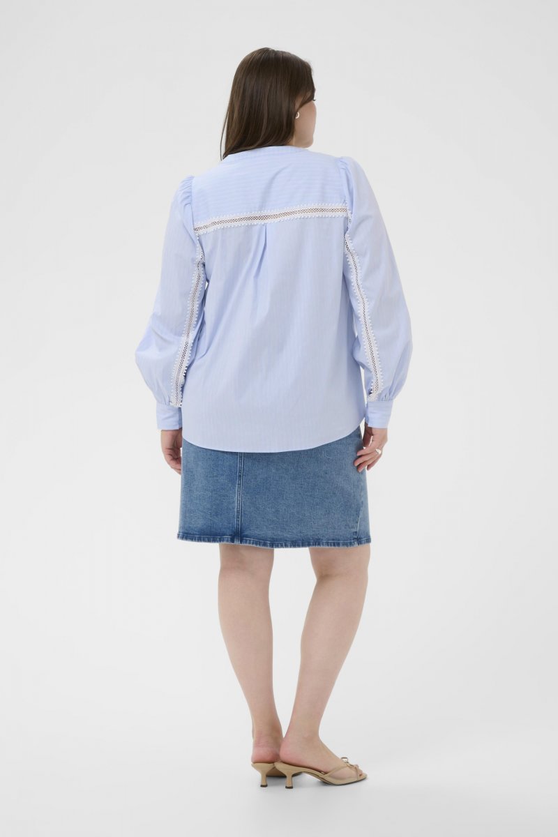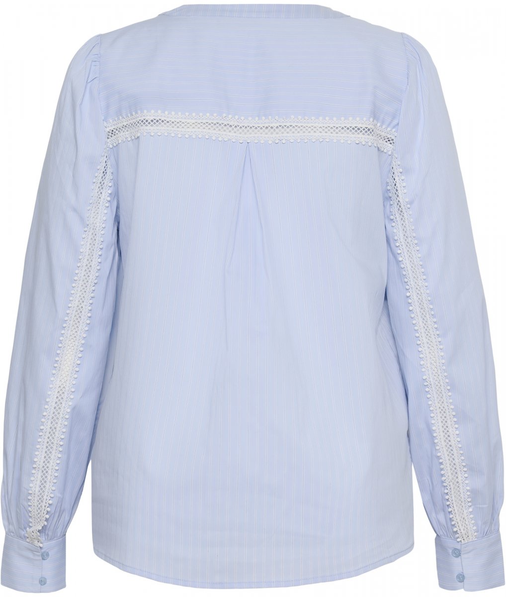 БлузаПредлага се в размери 42–54От марката Kaffe CurveМатерия: 55% памук, 45% полиестерСтандартна кройкаЦветът е синКликнете тук, за да видите ръководството за размери