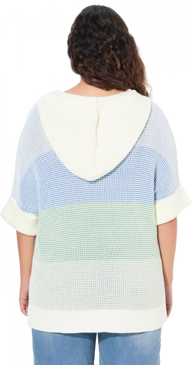 Ръководство за размери - Ulla Popken Block Stripe Hooded Short Sleeve Sweater Mint Green