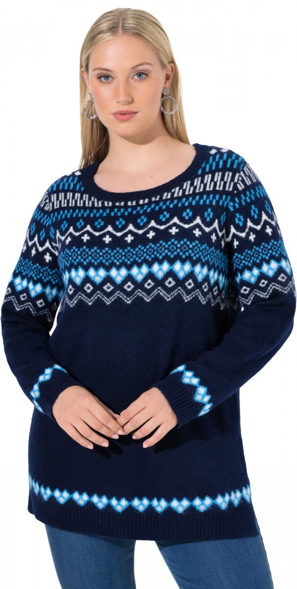 Ръководство за размери - Ulla Popken Norwegian Style Pastel Tone Long Sleeve Sweater Ink Blue