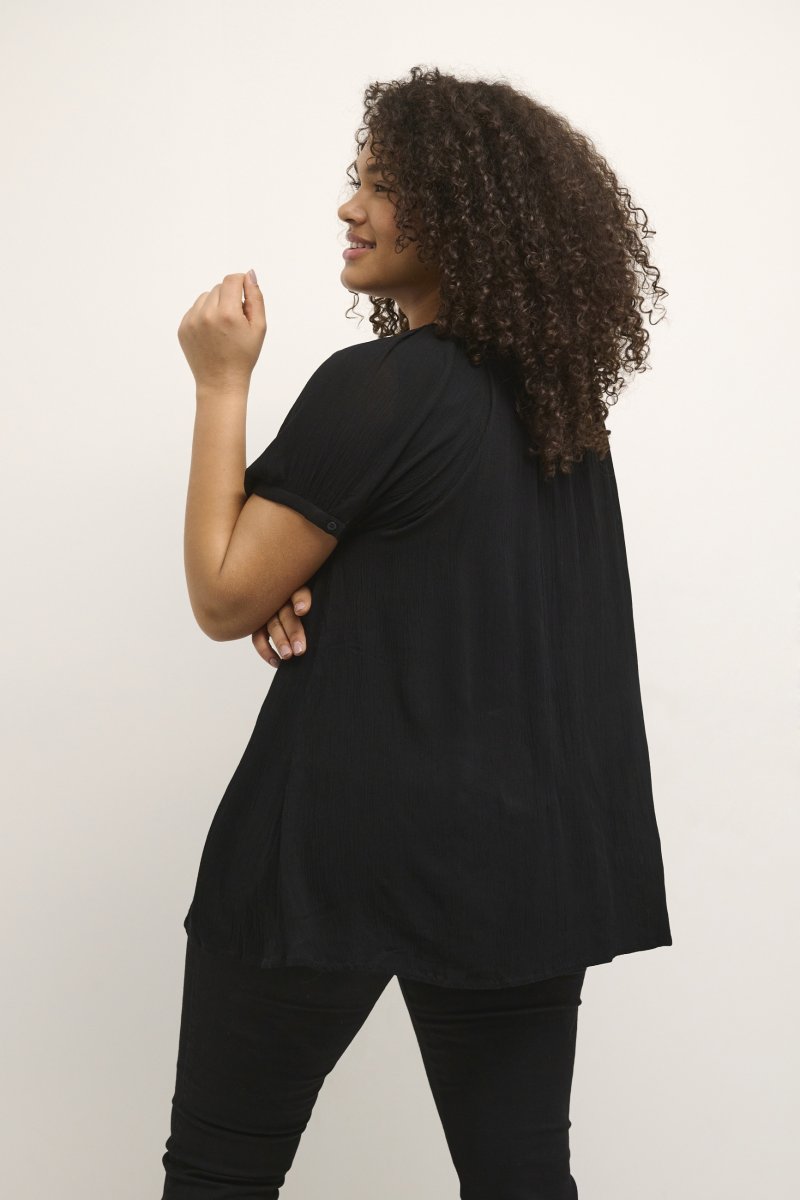 Kaffe Curve Ami Къс ръкав Блуза Дълбоко черно
