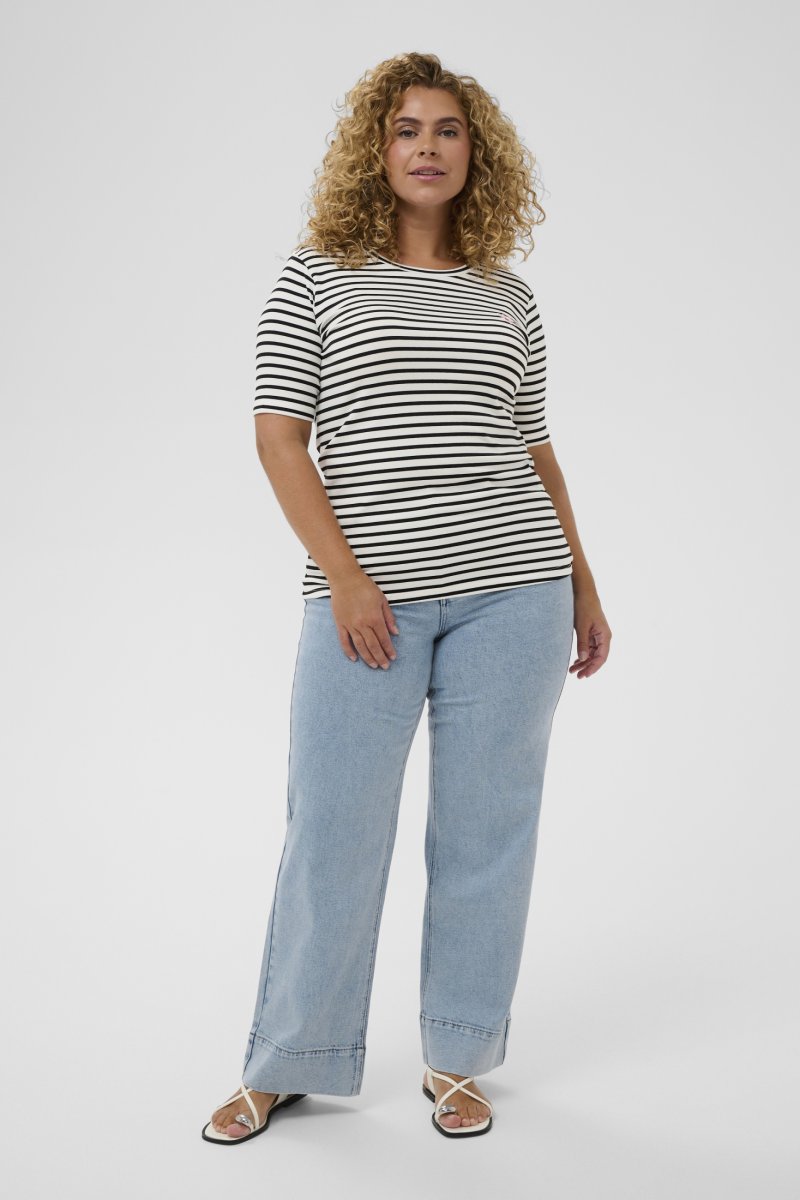 ТенискаПредлага се в размери S–XLОт марката Kaffe CurveМатериал: 45 % полиестер, 25 % памук, 25 % вискоза, 5 % еластанСтандартна кройкаКликнете тук, за да видите ръководството за размери