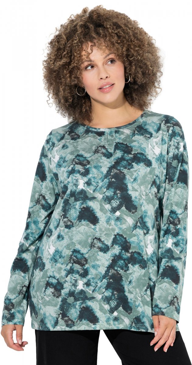 Ulla Popken Abstract Print Long Sleeve Tee Teal Green