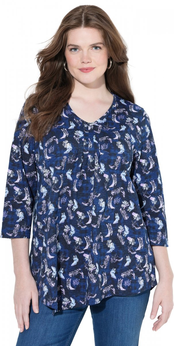 Ръководство за размери - Ulla Popken Asymmetric Cowboy Boot Print Tee Dark Blue