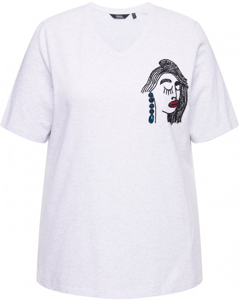 Ръководство за размери - Ulla Popken Embroidered Face Motif Short Sleeve V-Neck Tee Light Grey Melange