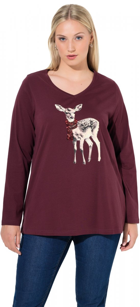 Ulla Popken Fawn Long Sleeve Graphic Tee Plum
