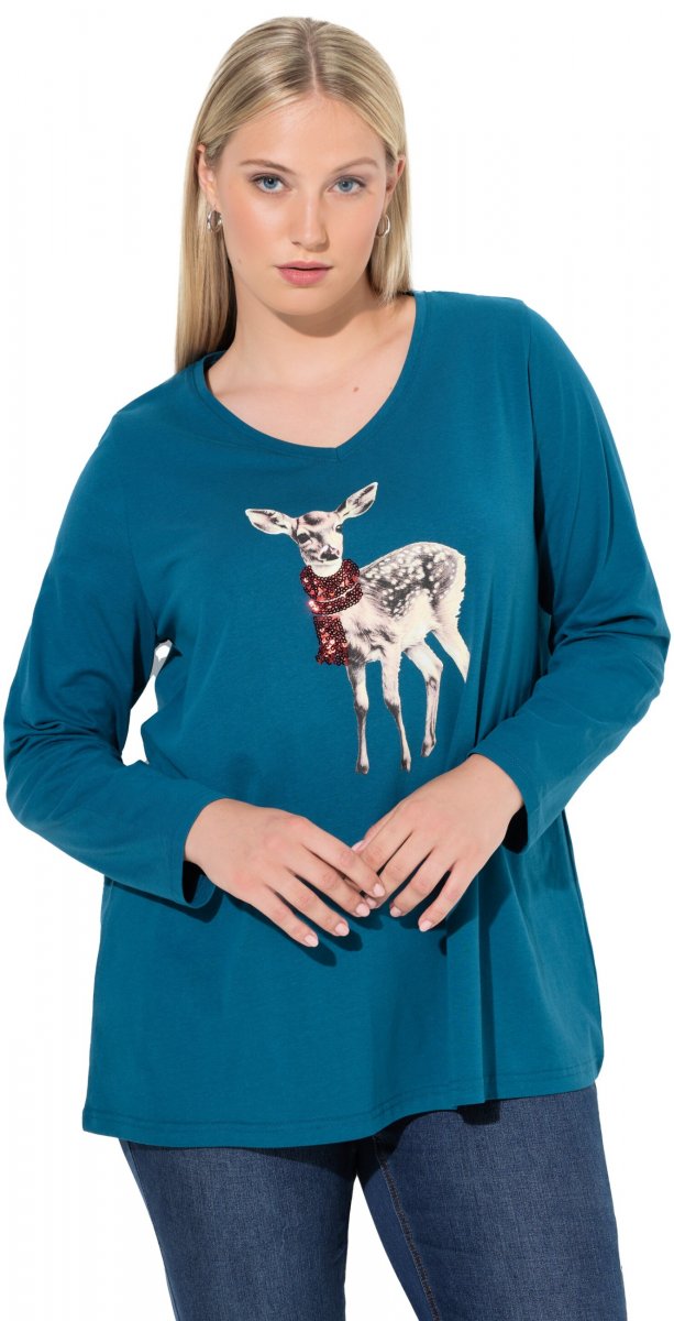 Ulla Popken Fawn Long Sleeve Graphic Tee Teal