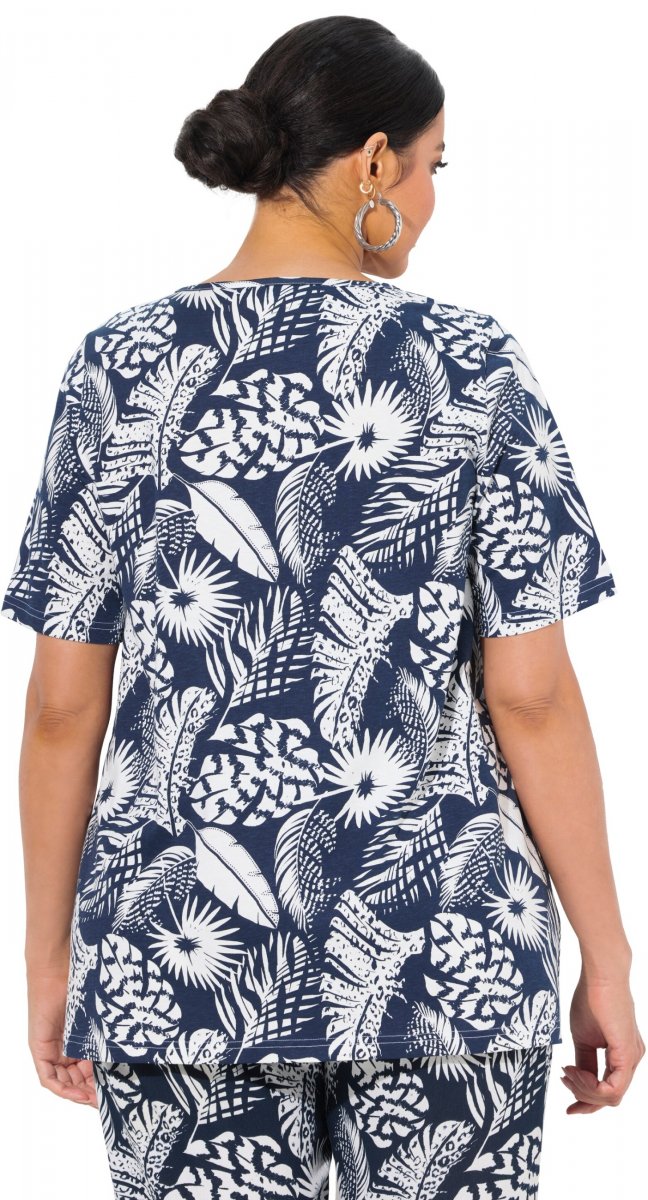 Ръководство за размери - Ulla Popken Feather Print Short Sleeve V-Neck Tee Ink Blue