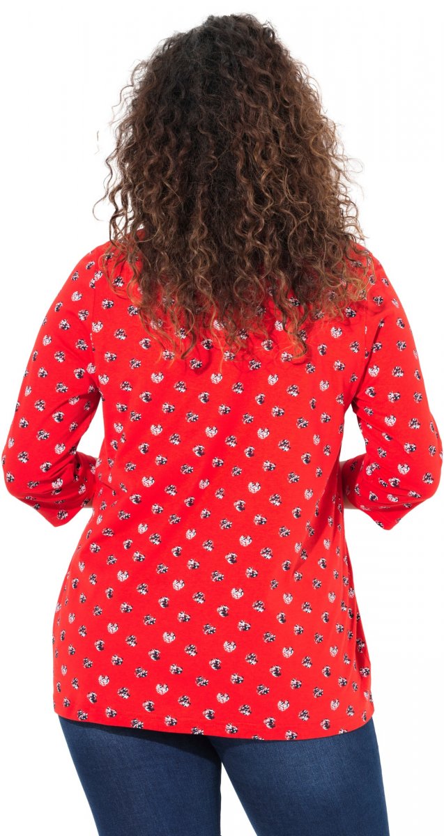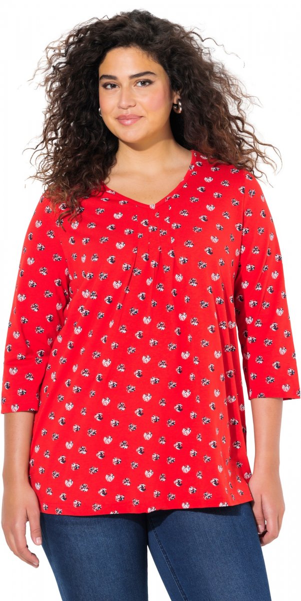 Ulla Popken Minimal Floral Print 3/4 Sleeve Tee Neon Red