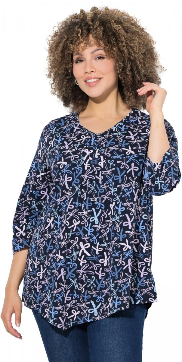 Ръководство за размери - Ulla Popken Ribbon Print 3/4 Sleeve Asymmetric Tee Navy