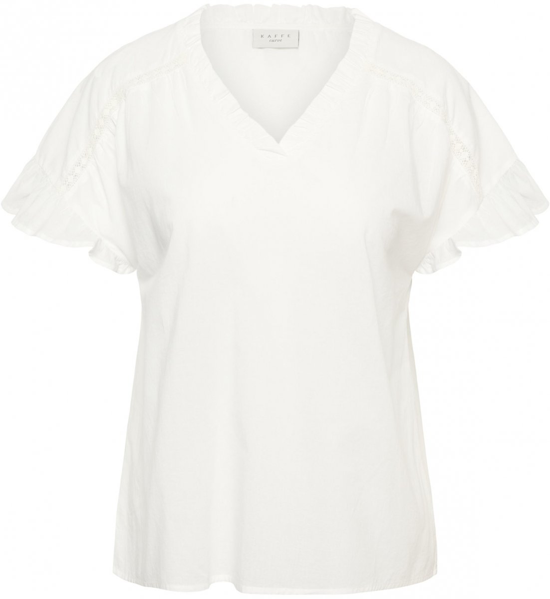 Предлага се в размери 42–54От марката Kaffe CurveПроизведено от 100% памукСтандартна кройкаЦветът е бялКликнете тук, за да видите ръководството за размери
