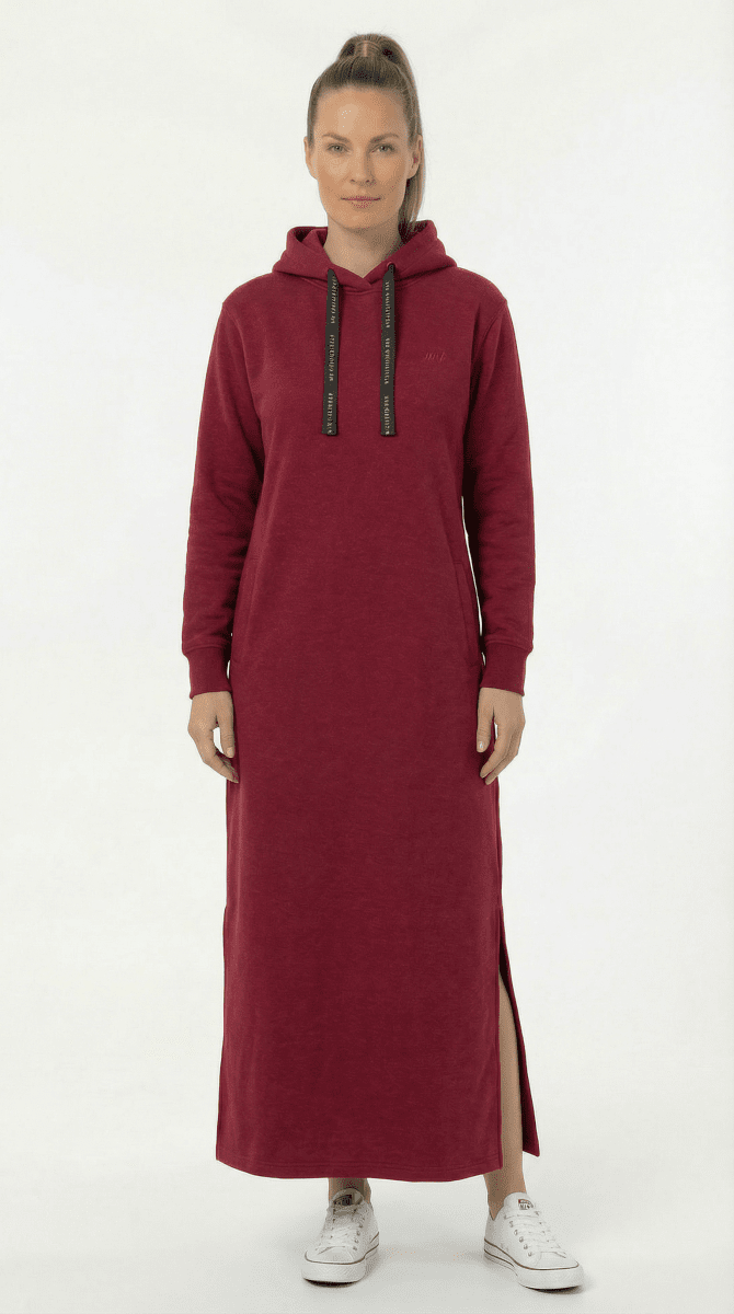 Дълъг суичър за жениНаличен в размери S-XXLОт марката Nora MikkenИзработено от 60% памук, 40% полиестерMaxiЦветът е бордоХудито е с 2 предни джобаКликнете тук, за да видите ръководството за размери