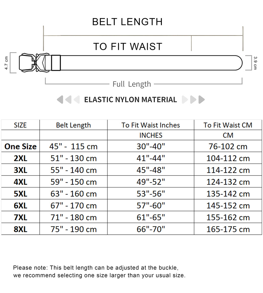 Ръководство за размери - D555 Dale Tactical Stretch Webbing Belt with Heavy Duty Quick Release Buckle Khaki