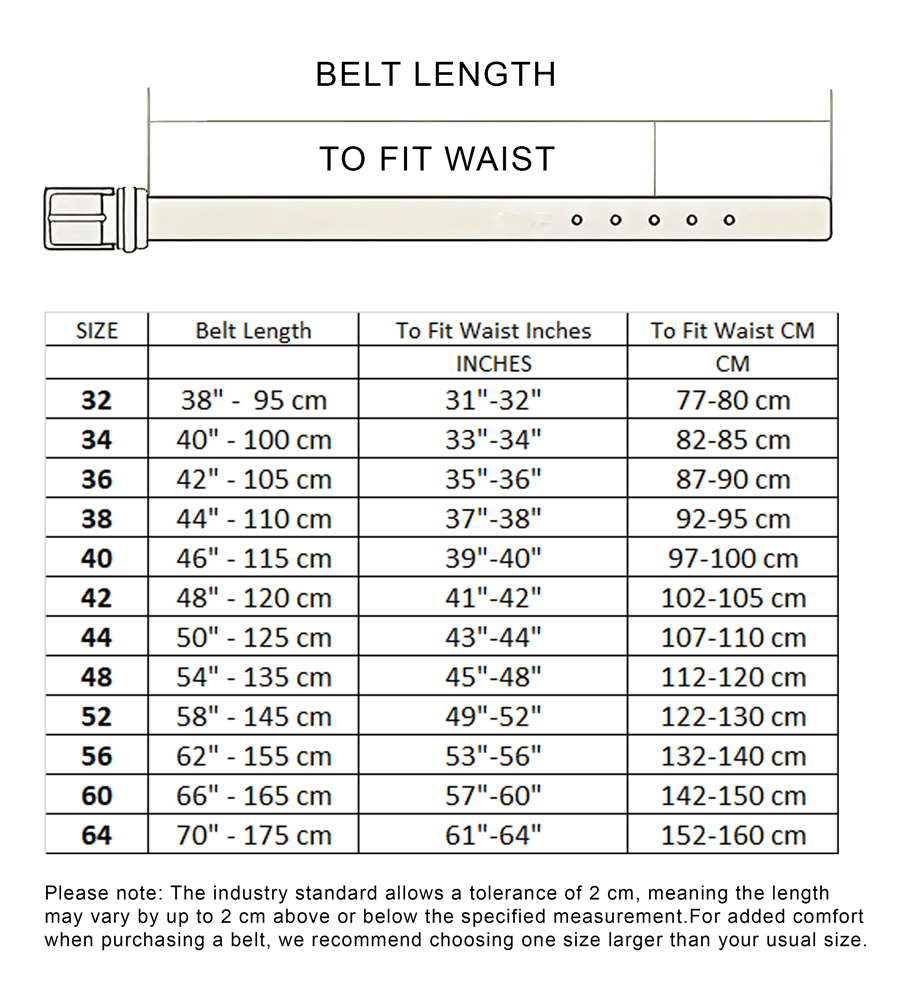 Ръководство за размери - D555 Dylan Tan Bonded Leather Belt