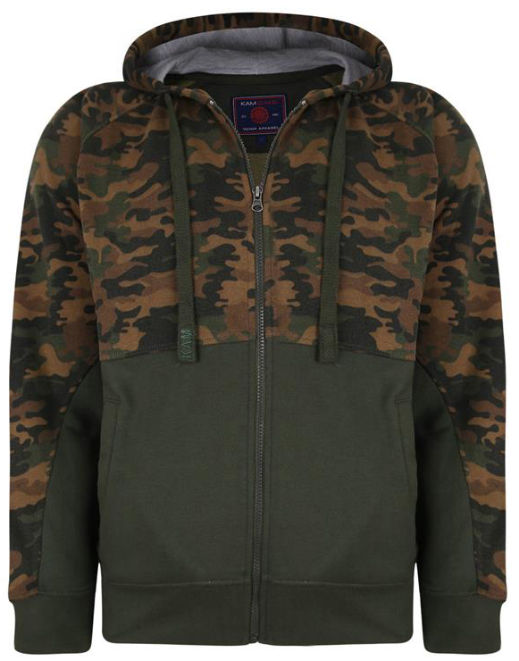 Ръководство за размери - Kam Jeans 7036 Camo Print Full Zipper Hoodie Khaki