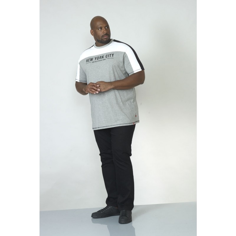 Тениска голям размерКупете го от нас в размери 2XL-6XLОт страхотната британска марка D555Изработено от памук/полиестерПъстро в бяло и сивоМашинно пране на 40°Сезонен продукт - размерите не се презареждатКликнете тук, за да видите ръководството за размери