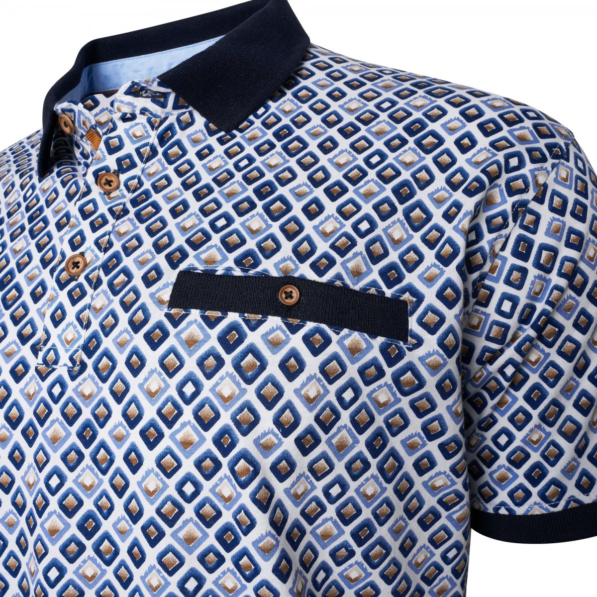 Ръководство за размери - Kam Jeans 5526 AOP Diamond Jersey Polo with Contracts Collar/Cuffs Navy