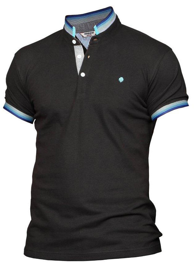 Kam Jeans 5499 Jersey Polo with Jacquard Collar/Cuffs Black