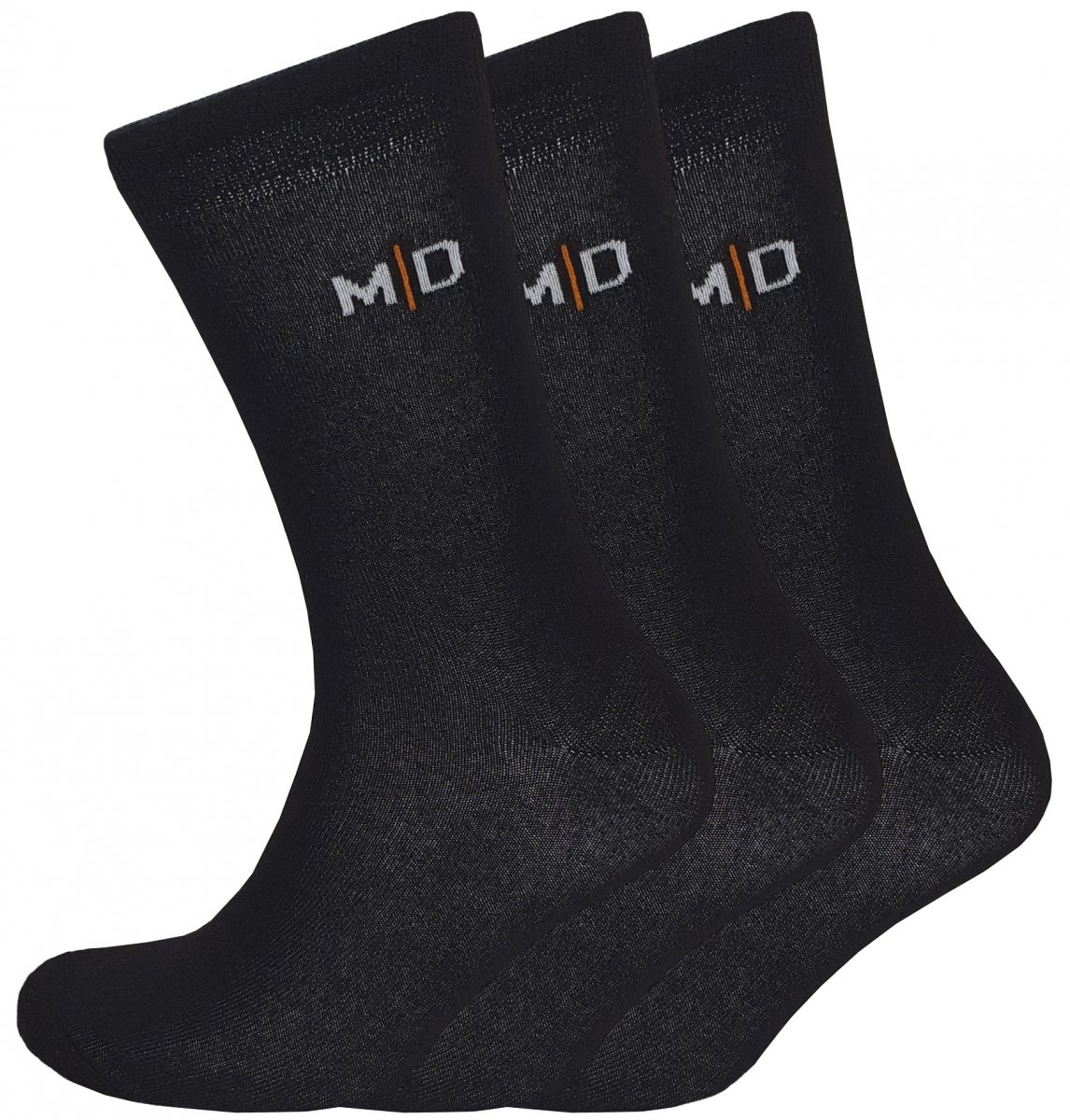 Троен пакет (от 6 бр.) чорапи на собствената ни марка Motley Denim. Едноцветни черни с мини симпатично MD лого в горната част. Чорапите са изработени от 50% памук, 48% полиестер и 2% еластан и могат да се перат на 40 градуса. Подходящи са за крак с размери 41-46.